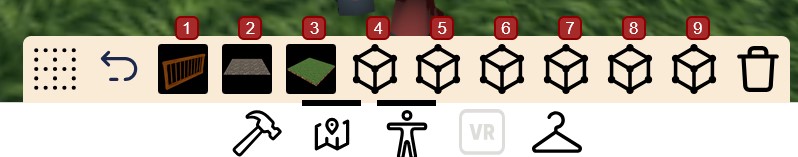 “Floor,” “wall,” “door,” and “roof” models can be added to the other slots next. These can be used by quickly switching between them via the model buttons or corresponding keyboard numbers (0 to 9).